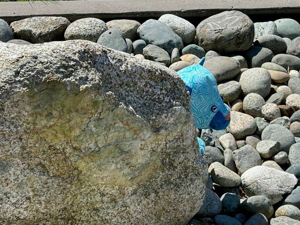 Then Taylor ran across the street to the neighbour’s rock garden! Thankfully there were no cars coming!