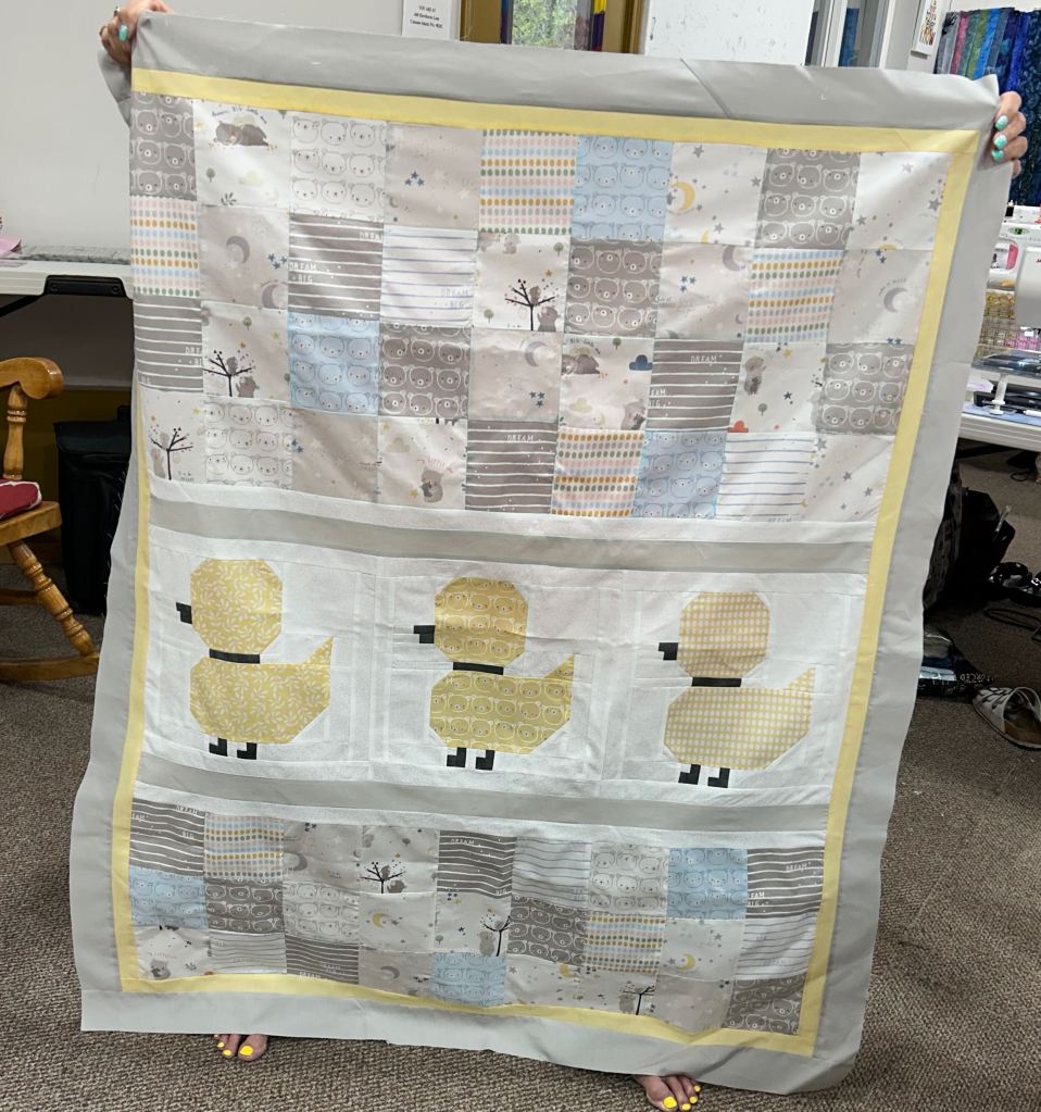 I don’t have a baby shower to go to in the near future, so this quilt will. be donated to the quilt guild. Make sure to visit all of the other blog participants and see what they made!