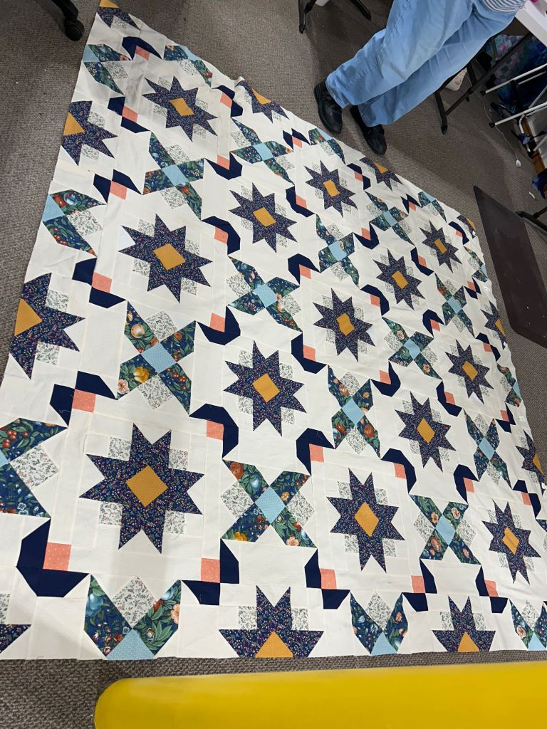 Sandwich and Quilt Lone Star Left-overs from Pin Dot Floral lone star not done