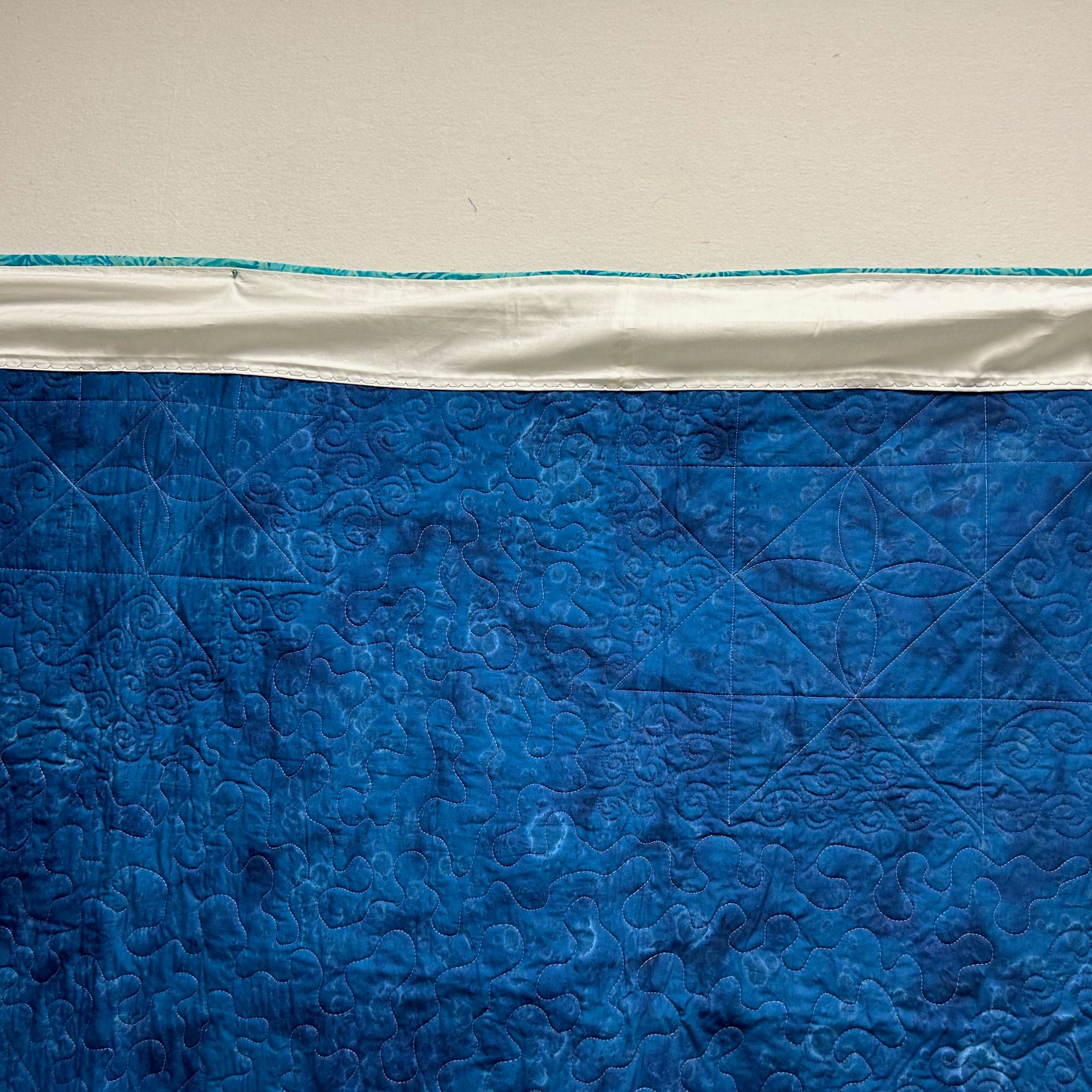 I tend to be thrifty with fabric, so I re-use the hanging sleeves! Sometimes, they are too long and I just fold them up on the ends. The quilt is going to be hanging and only the people hanging the quilts will see that it’s folded over. Well, I guess you now know as well!