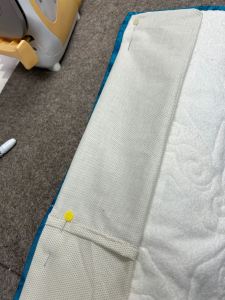 If you’ve been following me for very long, you’ll know that I highly dislike hand sewing. In fact, after about 10 minutes, my hands are so sore, it’s ridiculous! So my hanging sleeves are put on by machine, or pins.