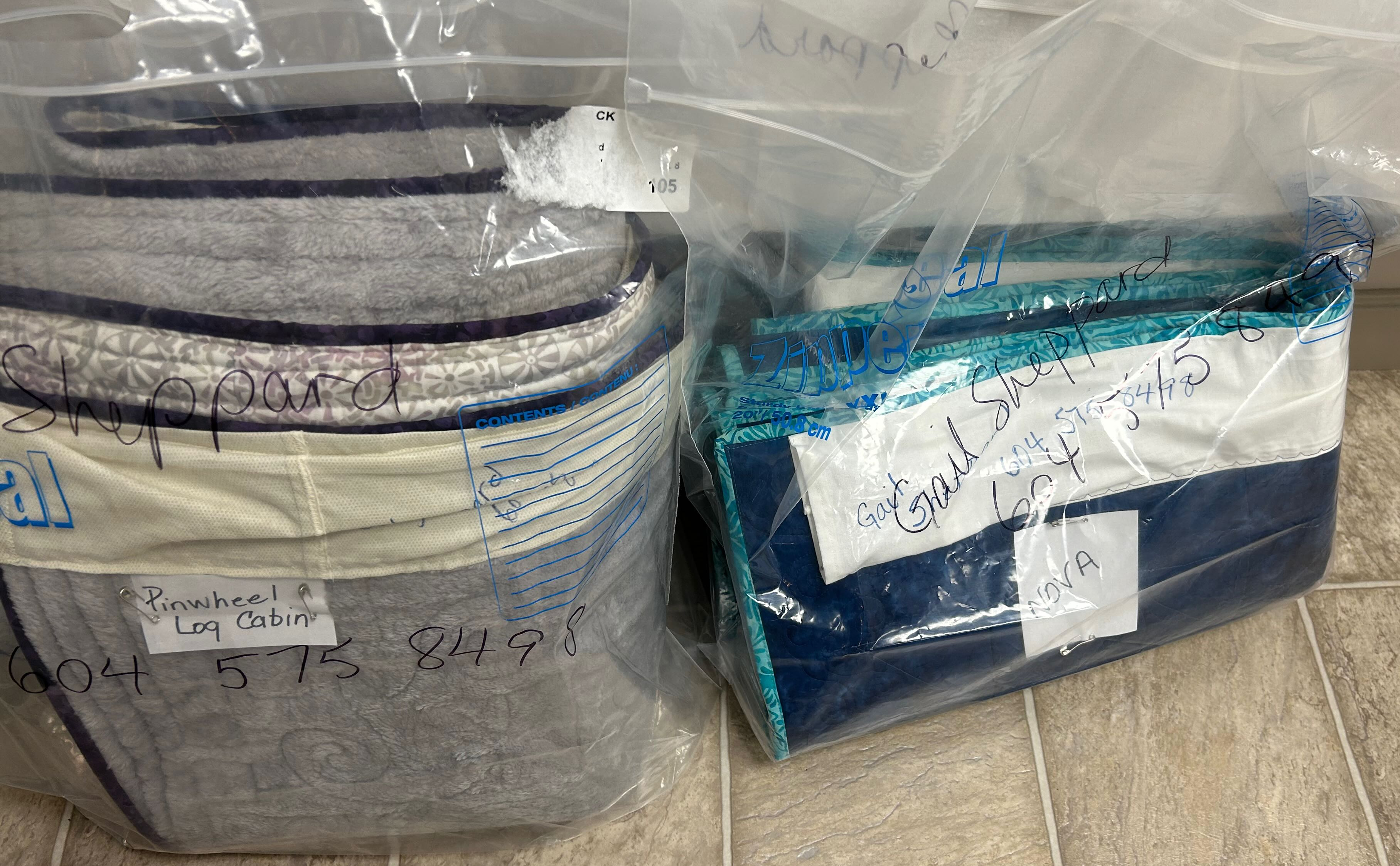I know that many of my friends already have their sleeves on and the quilts bagged and ready to go. Not me!! Why do it ahead of time when I can feel under pressure and get them done without delay?