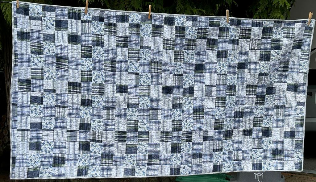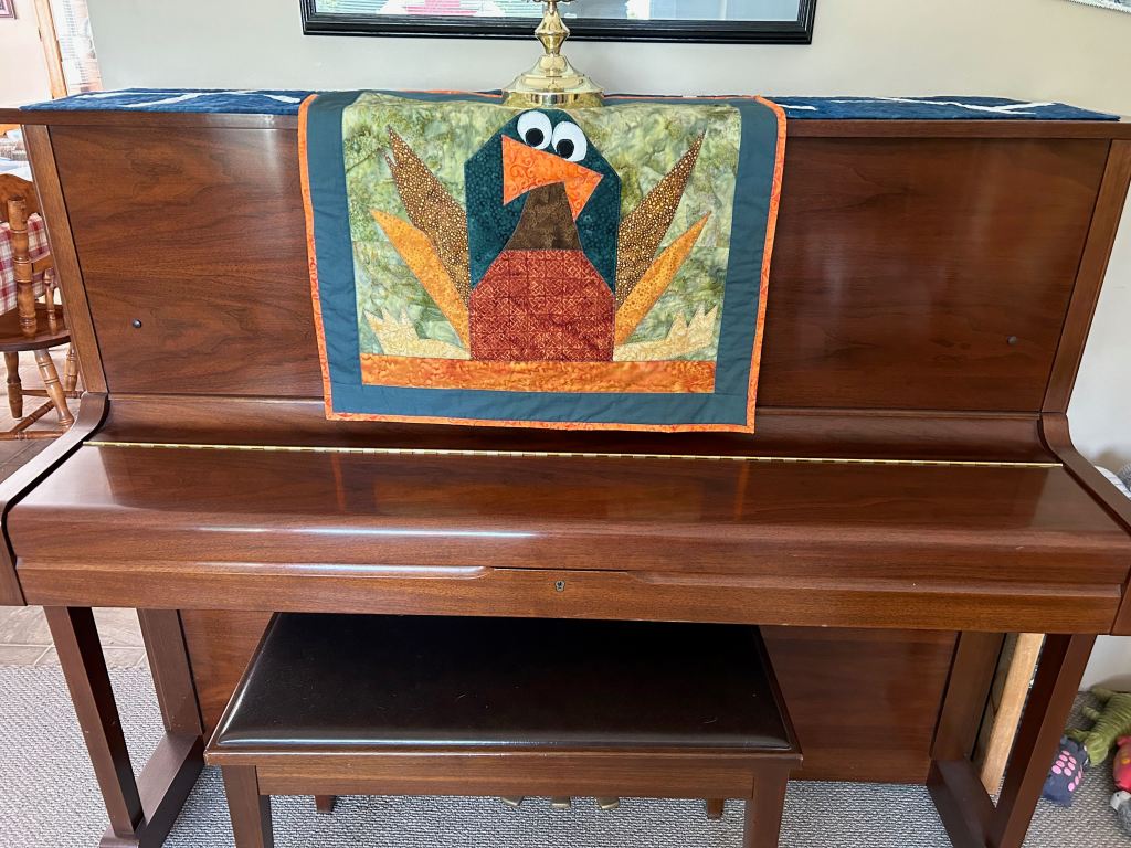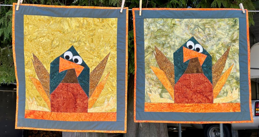 The first Silly Moon ruler I bought was “Turkey.” A friend of mine was helping vend at a quilt show and convinced me to buy it (Thanks, Judy D!). It was something that sat and sat. Finally, one day, I decided that I would use it on this donation quilt. You can read about it HERE.
