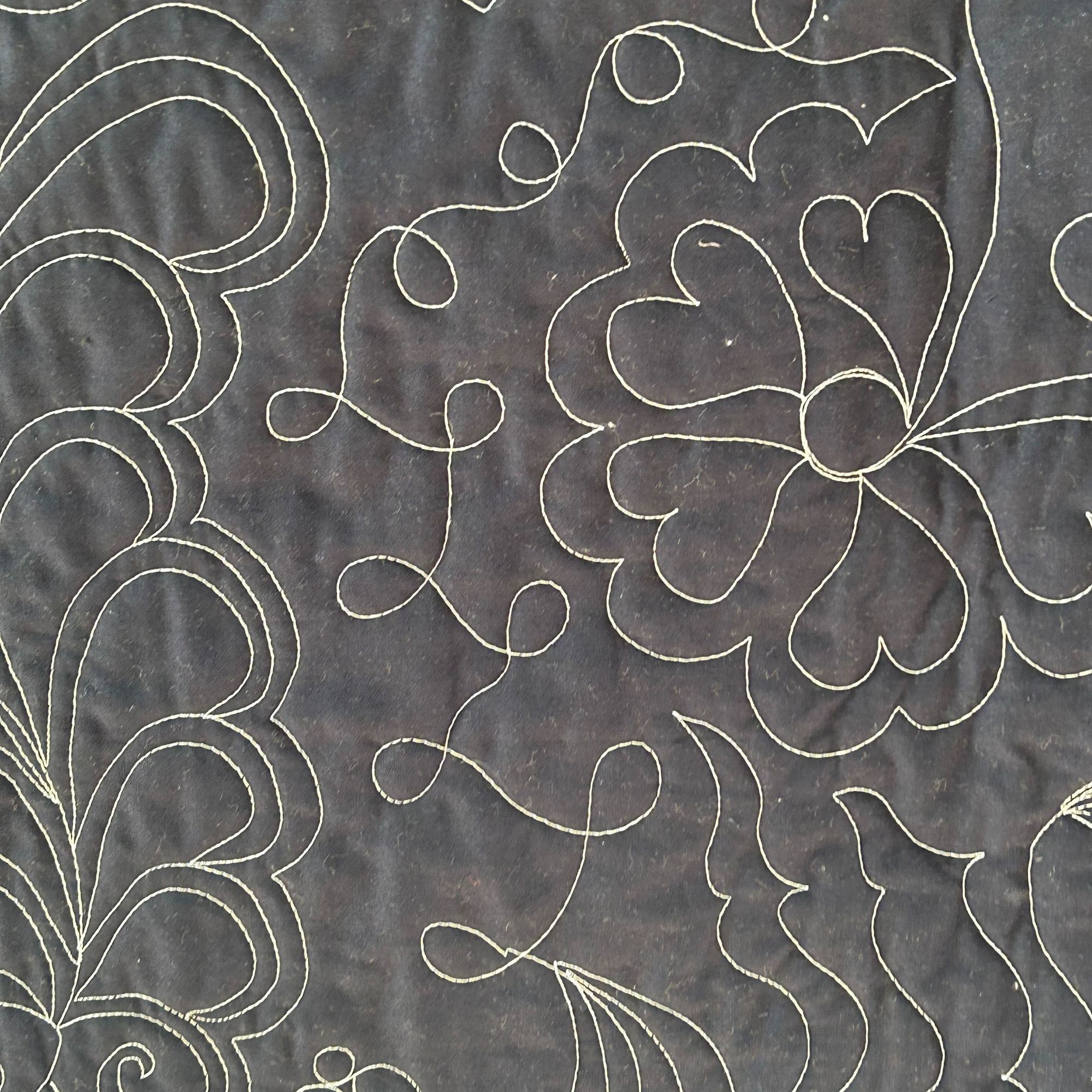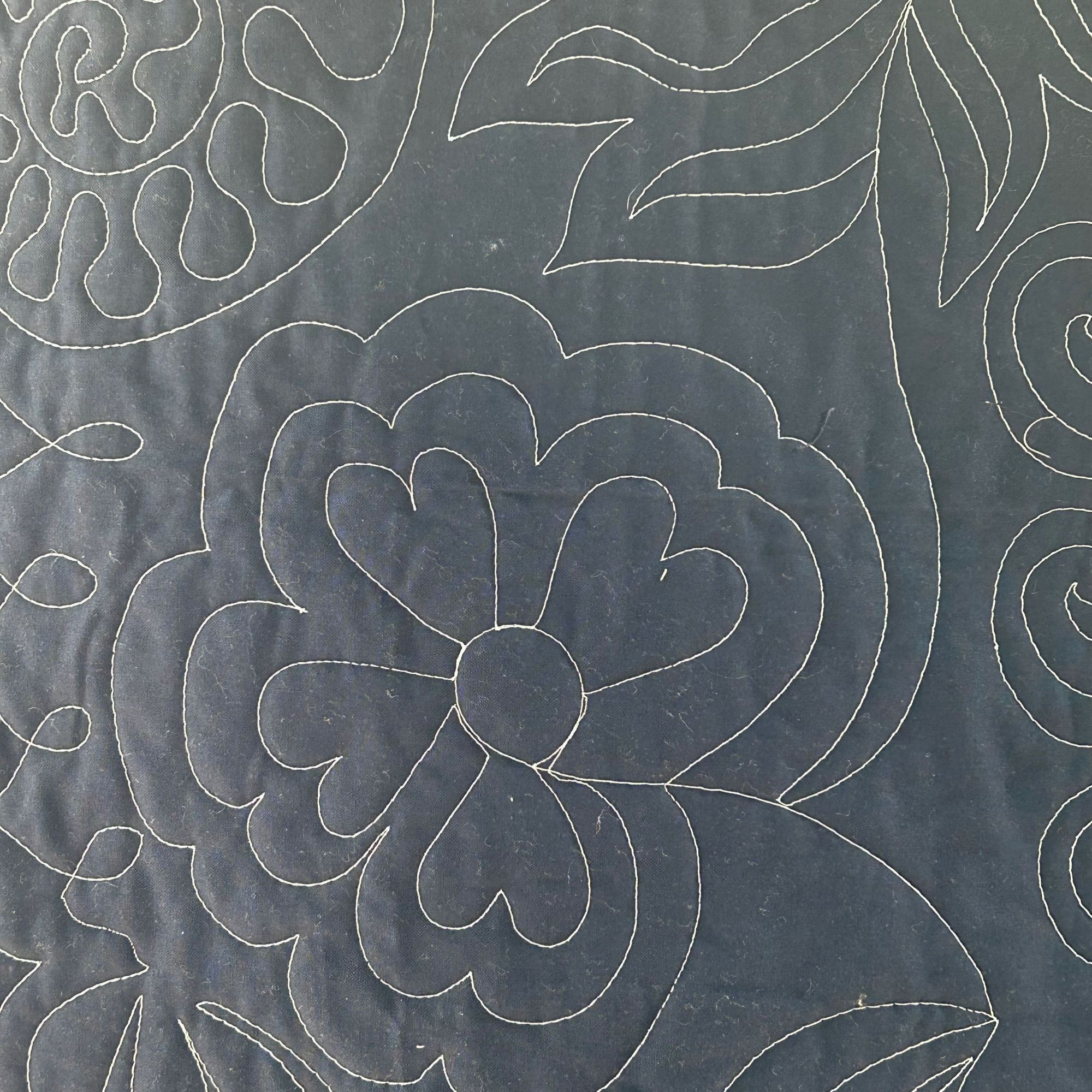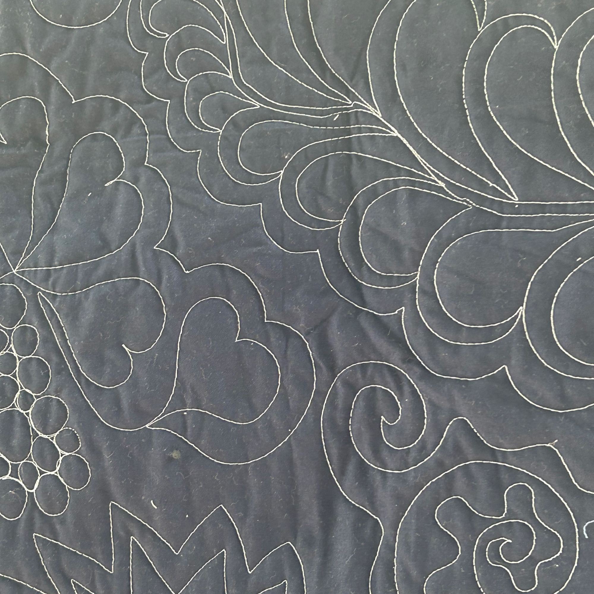 I believe it was during the Covid days that our guild had Kellie (owner of Silly Moon) do a workshop using 2 rulers, “Charming” and “Edgie 6“. We were instructed to make a small table mat using 5” squares. Well, for those of you that know, me, you know that I often don’t follow the exact instructions and I obviously made the following quilt bigger than a small table mat. In the centre, I followed the instructions in the class and used the appropriate rulers. Practicing the different motifs on different blocks. Then, I used a mixture of the Charming and Cupid rulers when finishing the quilt. You can read about it on THIS POST. I found the class was excellent and the rulers were easy to handle. You can access the on-line class HERE.