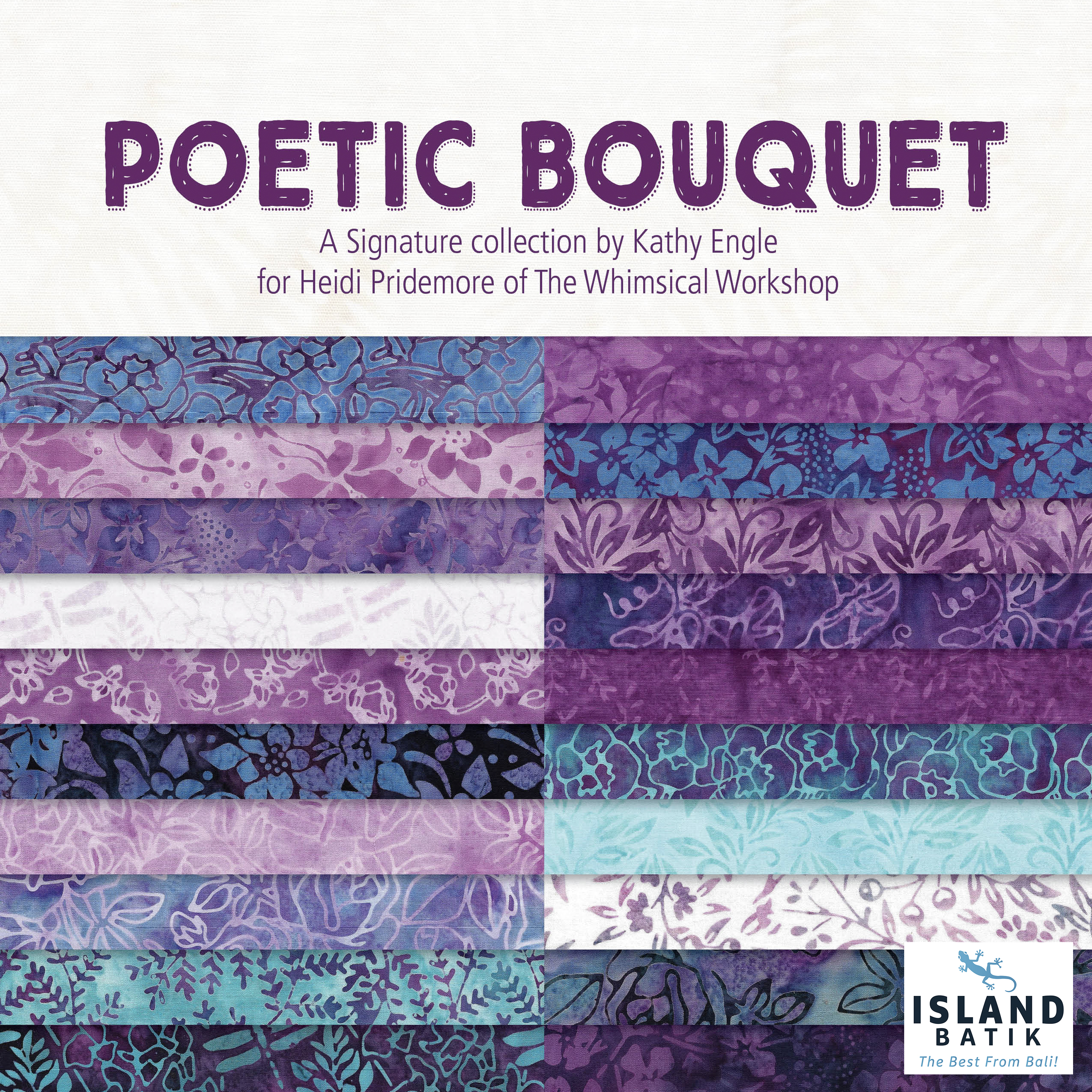 For my SAHRR 2025, I am using the Island Batik fabric collection “Poetic Bouquet,” designed by Kathy Engle for Heidi Pridemore of The Whimsical Workshop and Island Batik’s solid white.