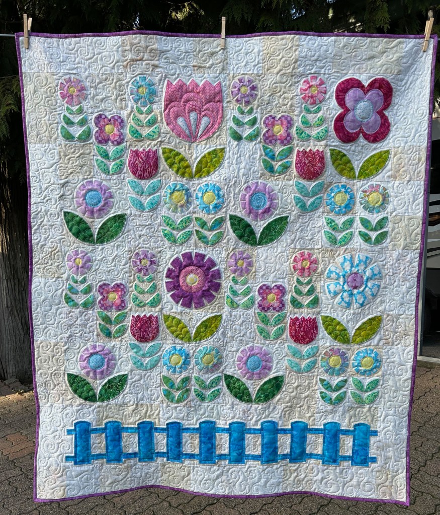 Edit: For my SAHRR 2025, I am using the Island Batik fabric collection “Poetic Bouquet,” designed by Kathy Engle for Heidi Pridemore of The Whimsical Workshop and Island Batik’s solid white.