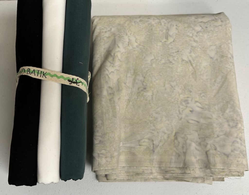 Solids and Neutral: A package with 4 yards each of solid White, Black and Dark Grey. Along with a 6 yard piece of Platinum. I use a LOT of neutrals and these will be perfect in future projects!