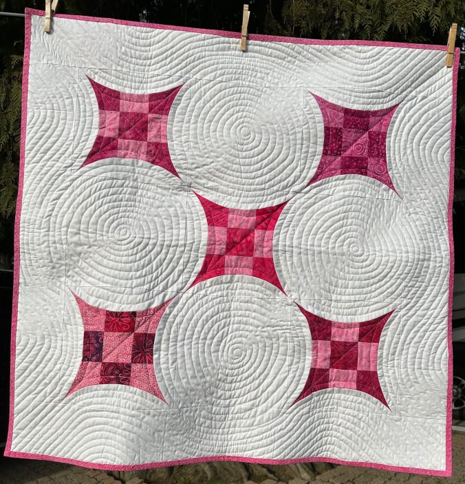 This quilt was made with the Accuquilt die “Glorified 9 Patch.” Of course, using the die makes sewing curves so very easy!!!