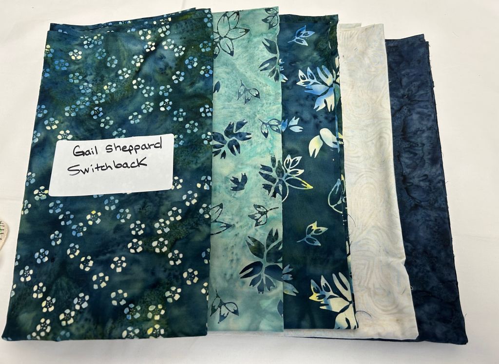 This is Fossil Finesse (the Spring ’25 Collection), Designed by Kathy Engle. It will be shipping to shops in September. It was paired with 2 yards of Baby Powder (from Naturally Neutrals) and 2 yards of Jasper-Teal Bermuda from the Fossil Finesse collection.