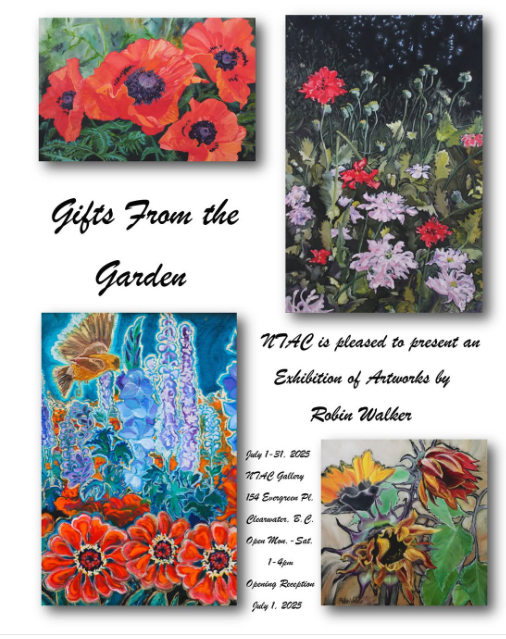 A good friend of mine is a very talented artist! She has an Exhibition “Gifts from the Garden” happening in Clearwater, BC. If you’re anywhere near Clearwater, it would be well worth the visit! (It’s on until the end of July!)