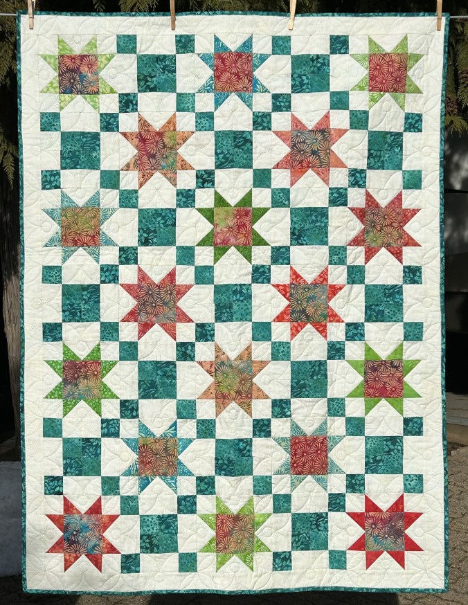 March’s Island Batik challenge was “It’s All Up to You.” We made anything we wanted. The choice was ours. I made this bear’s paw quilt. See THIS POST for more details.