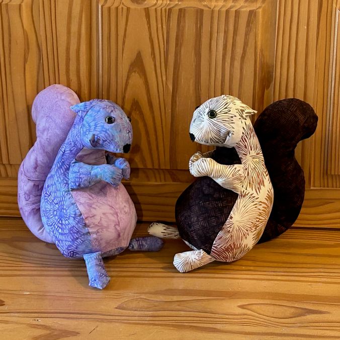 The June Island Batik challenge was to make a soft toy using a Funky Friends pattern. See HERE for the adventures of these 2 squirrels!