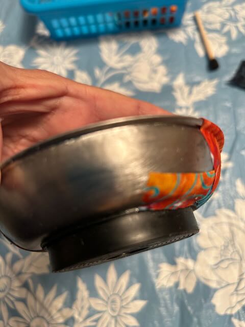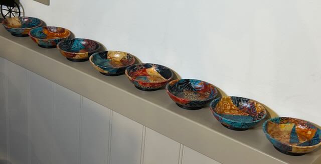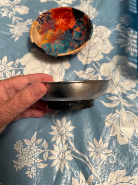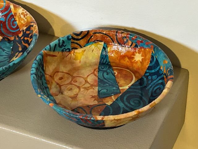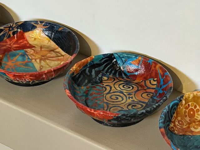 But there is more. When I cut out the Kite shapes with the Accuquilt, there were pieces left-over. Pieces that could not be cut into nice half-square triangles or squares. So … I had an idea to use some Mod Podge and cover some magnetic bowls. I covered a bunch of them and gave them to my quilting friends for Christmas.