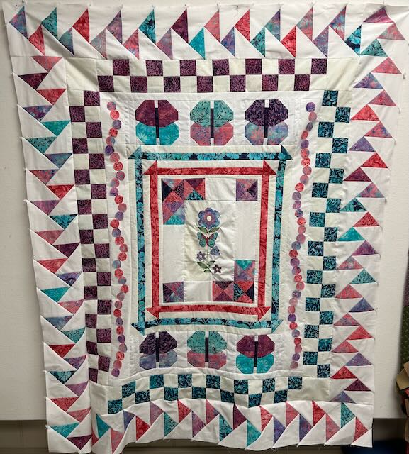 KJ H says, “Picture of the actual block, plus its temporary location in the whole quilt.“