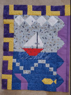 Katie says, “I finally figured out how to sew all the parts together and got my fish attached. No whale yet!”