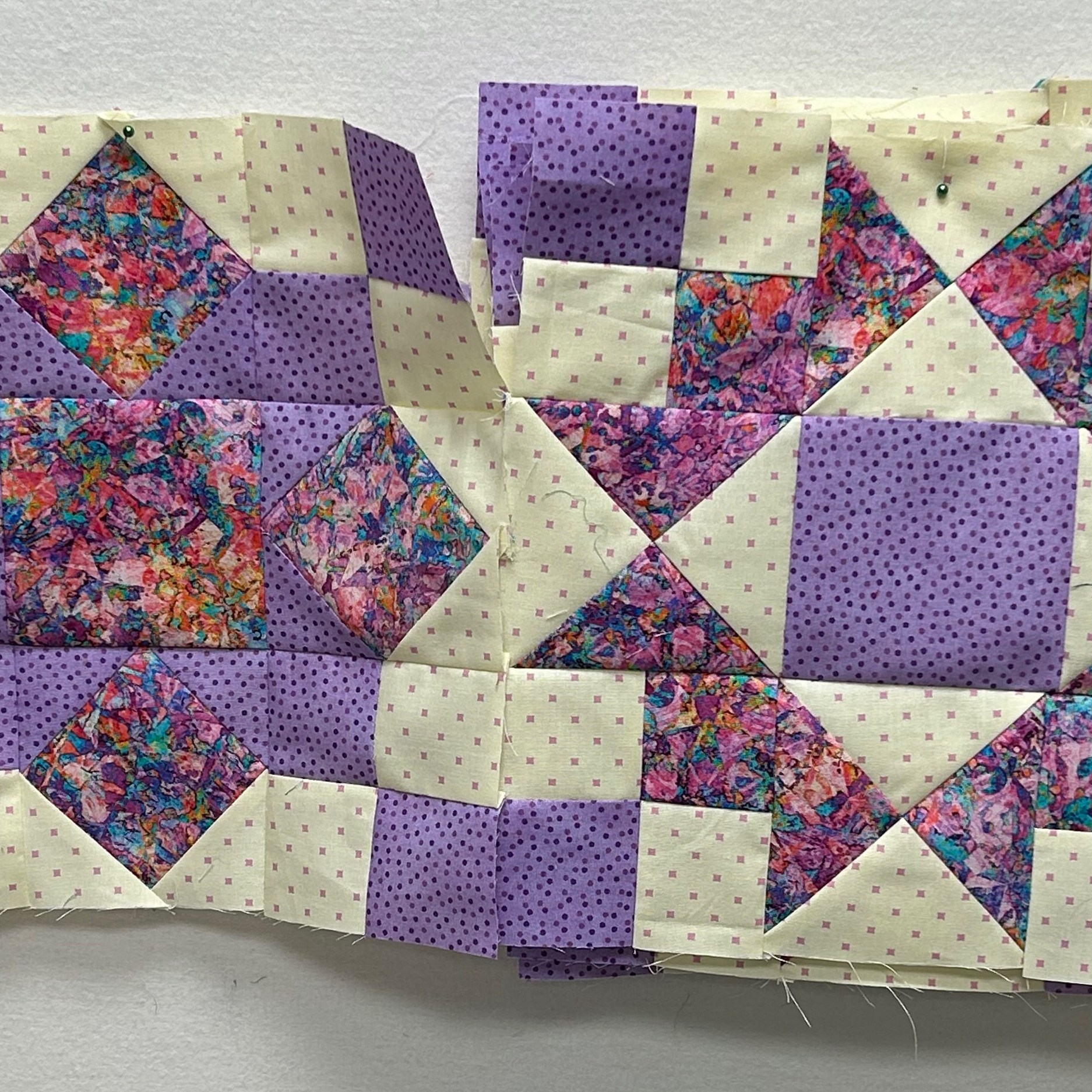 I add all of the side triangles I had cut with Pin Dot Floral and this quilt was born: