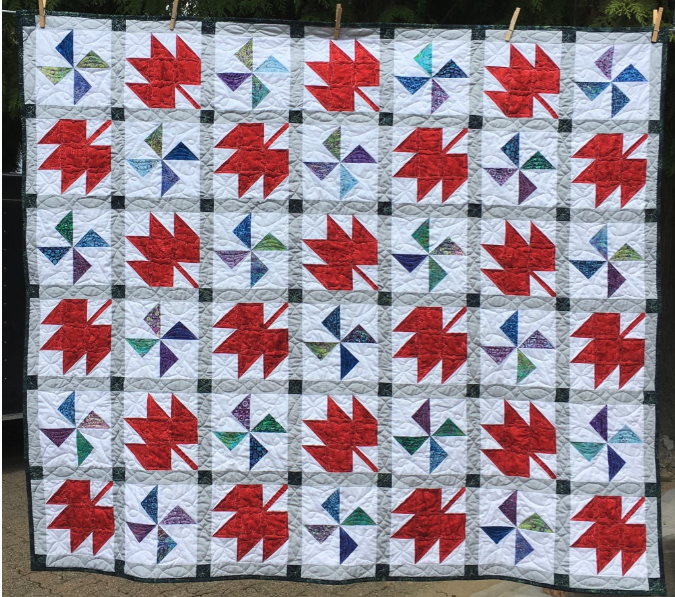 Such a different look with the same fabrics! For this one, I used Hobbs black batting. It’s perfect for dark quilts and doesn’t dull the beautiful colours! And again, I used Silly Moon’s “Rocket” for the straight line quilting. I love how the markings on the ruler make it super easy to have a pattern without marking the quilt! This quilt is 44″ square.