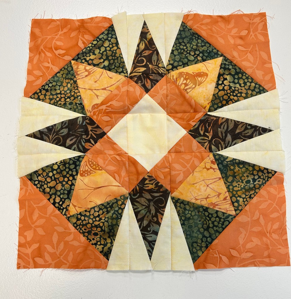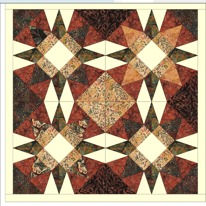 I was gifted a fat quarter bundle … and then it was time to play. EQ 8 to the rescue!! But nothing said, “make me!” … So, I went to my Accuquilt dies and saw the Kite die in the 8″ Qube Angles box and paired it with the Triangles in a Square die. And I started cutting.