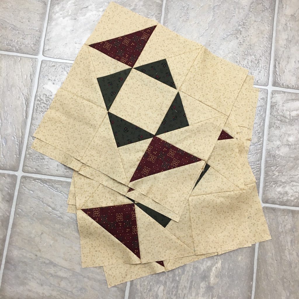 - Sandwich and Quilt Lone Star Left-overs from Pin Dot Floral lone star not done.