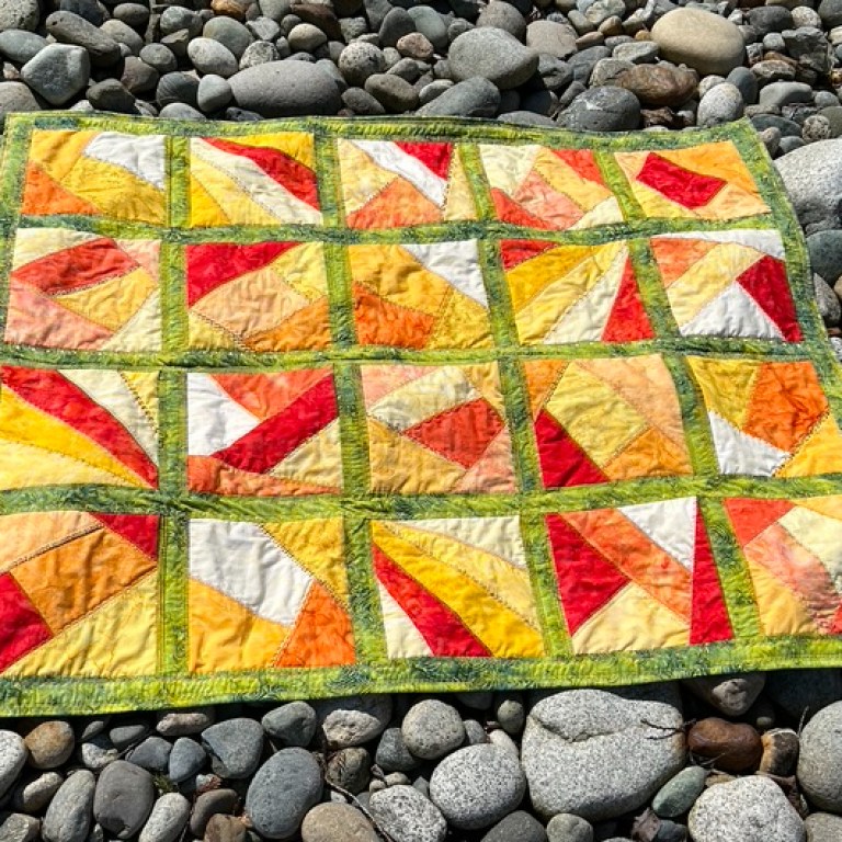 Challenge: Life can send us spinning sometimes, so let’s put those spins and whirls to good use in a quilt. Make something with pinwheel blocks, circle quilting, or whirly gigs. Try not to whirl out of control!