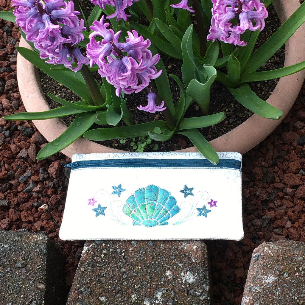This next one is a free pattern from Sweet Pea in Australia. It was a fun way to learn “in the hoop” applique and zipper insertion.