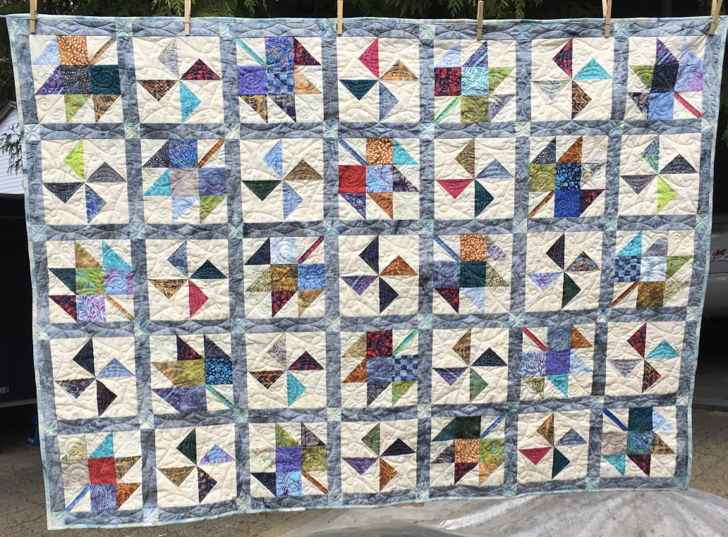 February’s Island Batik challenge was “Create for a Cause.” Each ambassador was to create a quilt to give to a charity of our choice. The guild I belong to gives “comfort” quilts to a local cancer agency. This quilt is destined to go there when they start receiving quilts (after Covid). You can read more about this quilt HERE.