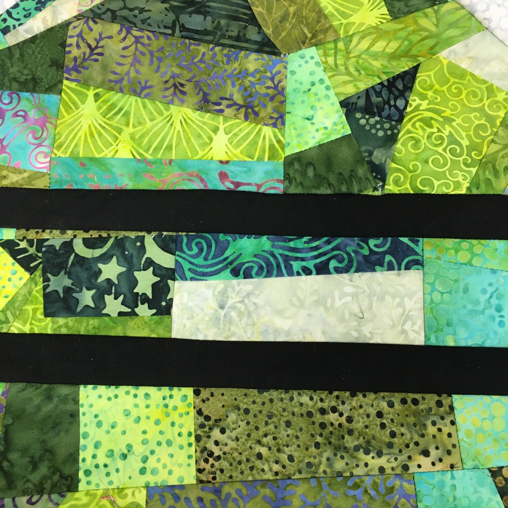 In March, I took a course “Speed Dating with Improv” by Krista from PoppyPrints. It took me a while to get the facing done, but it was finally finished in June! I used Island Batik solids for this piece.