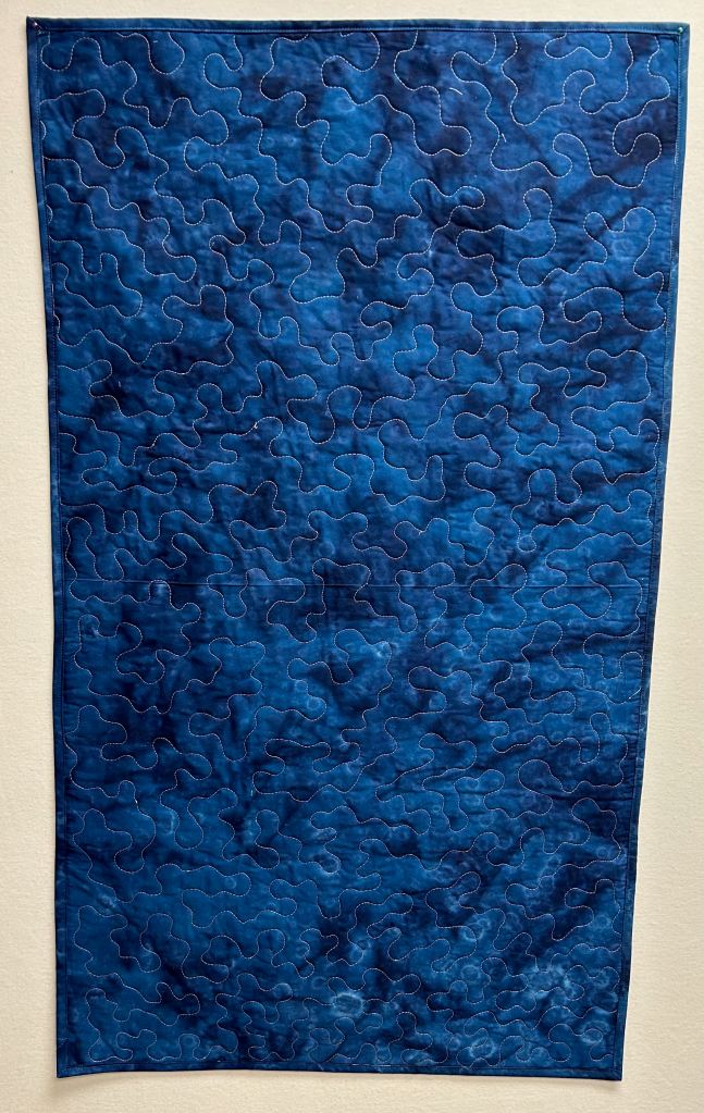 I don’t know what I was thinking when I made the sashing 1″ wide and the cornerstones were 1″ squares that finished at 1/2” square. The quilt would have been bigger and easier to assemble if I had made the sashing 2″ wide and the cornerstones 2″ square. However, I did get it assembled, quilted and bound. The simple quilting was straight line with a walking foot on my domestic sewing machine. The label is already on it – ready for donation at the next guild meeting.