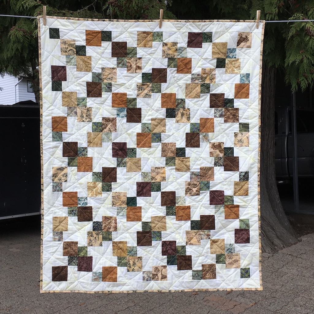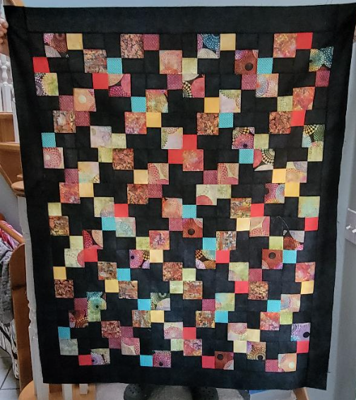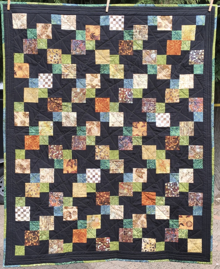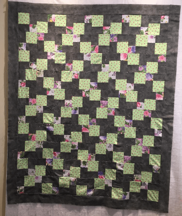 Here’s the quilt my pattern tester made: She used the extra 4 patches for the back.