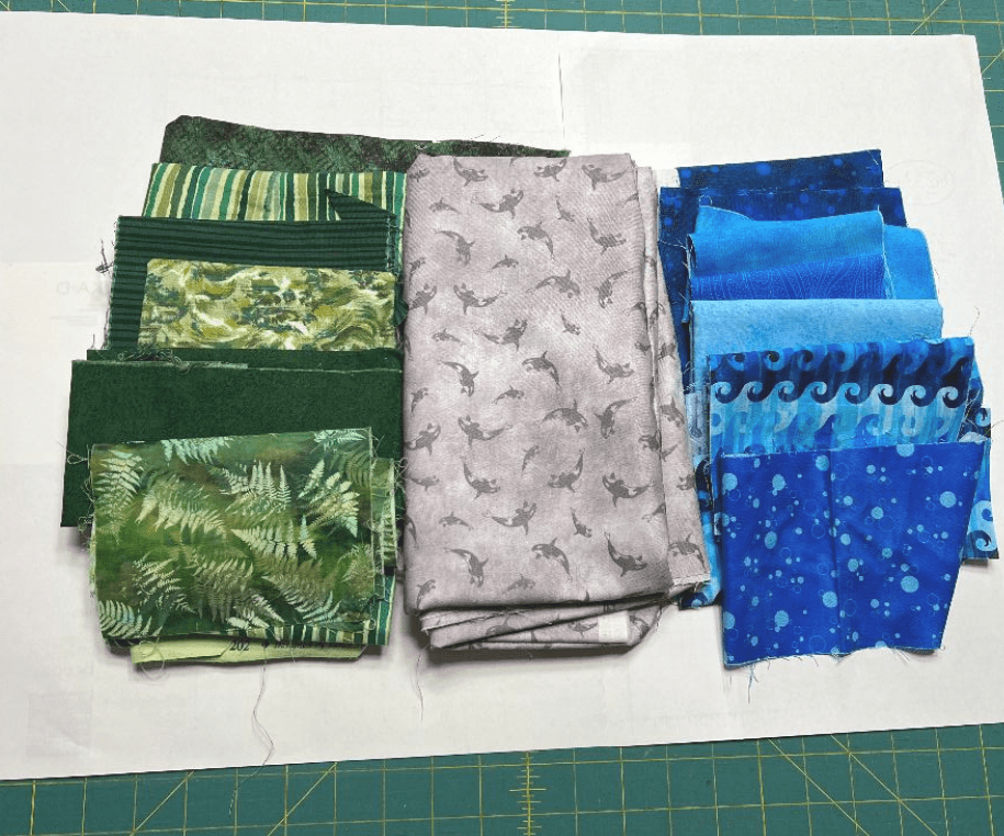 Jill has pulled fabric for her quilt … with those blues and greens against the grey – it’ll be lovely!