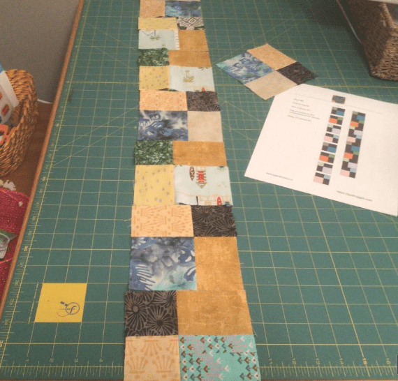 Heather also did a scrappy background. And why not? Here it is with the rows ready to put together!