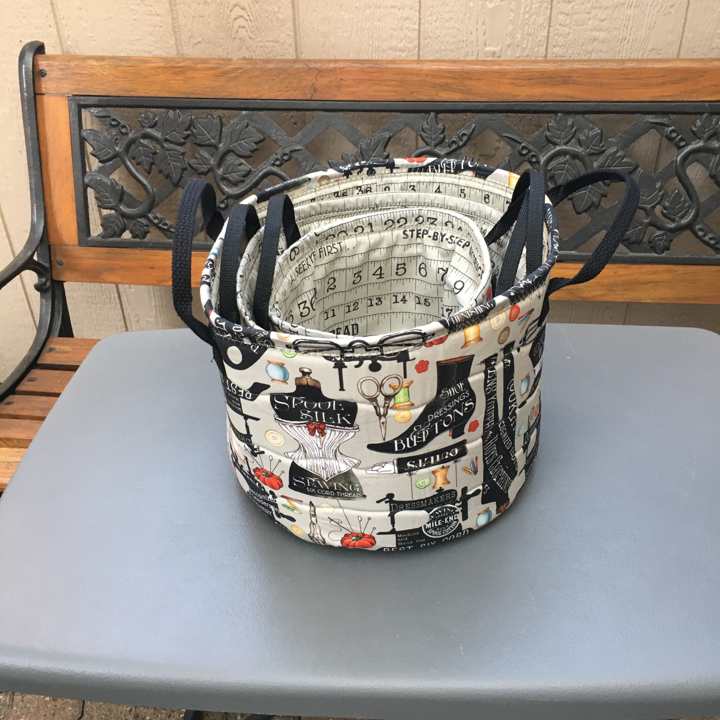 The Fabric I showed you last week was sewn into buckets! The pattern is “Storage Solutions Bucket Bags” by Among Brenda’s Quilts.