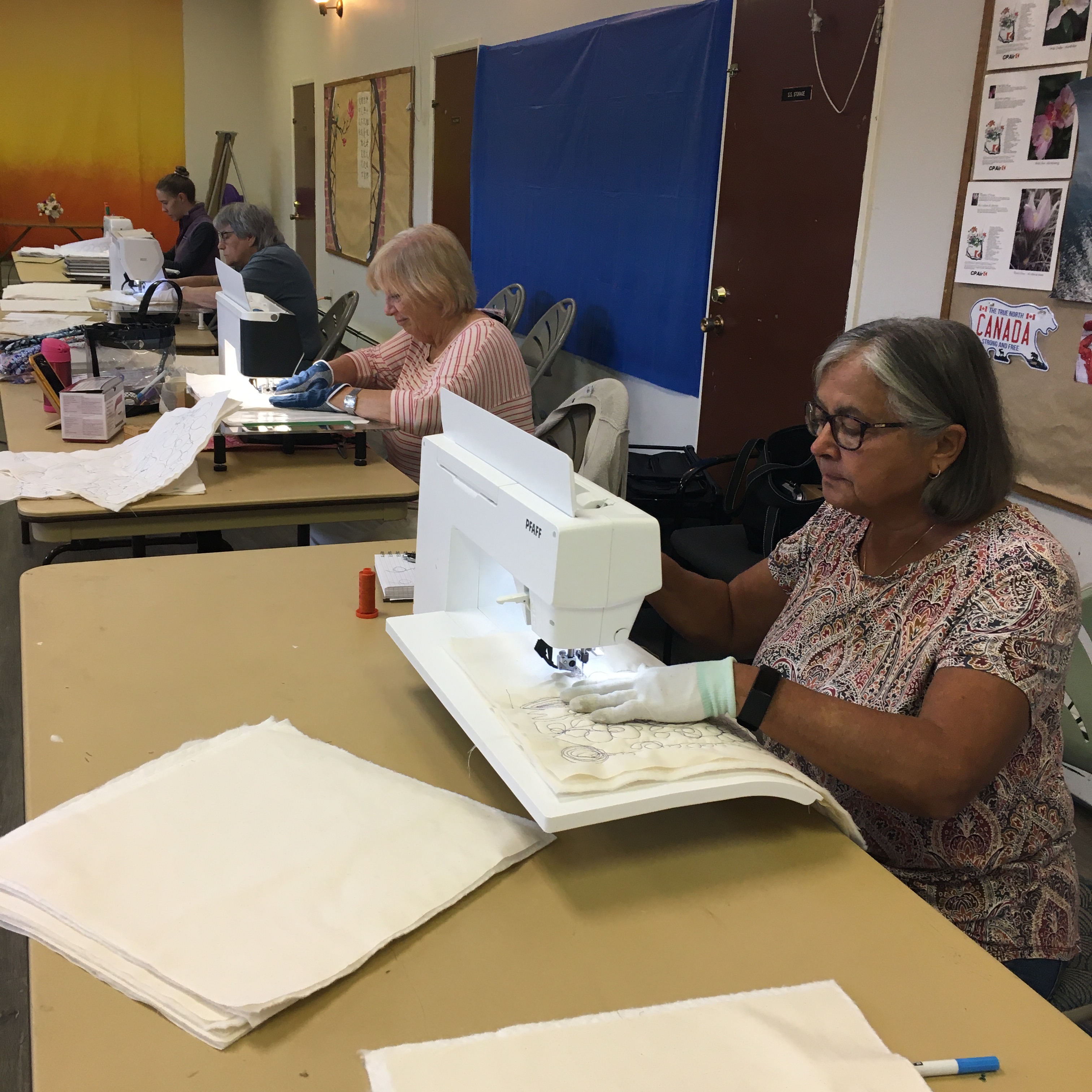 On Saturday, the guild had Carola from Carola’s Quilt Shop come and teach a free motion class. Amy & I were asked to help. Carola didn’t need our help … but, we pretended to assist!
