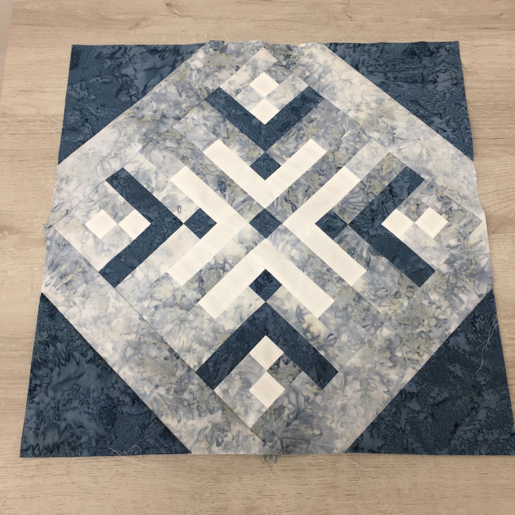 - Fabric: Island Batik: Blue scraps and solid white