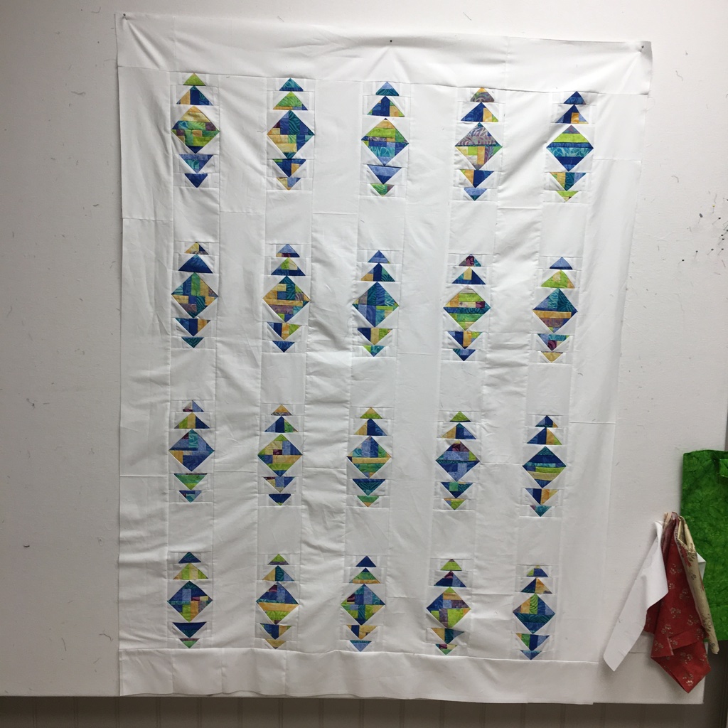 - Fabric: Island Batik (Lumin Fabrics): “Frosted Folliage” an original collection by Tiffany Hayes of Needle in a Hay Stack, Whip Cream and Slate.