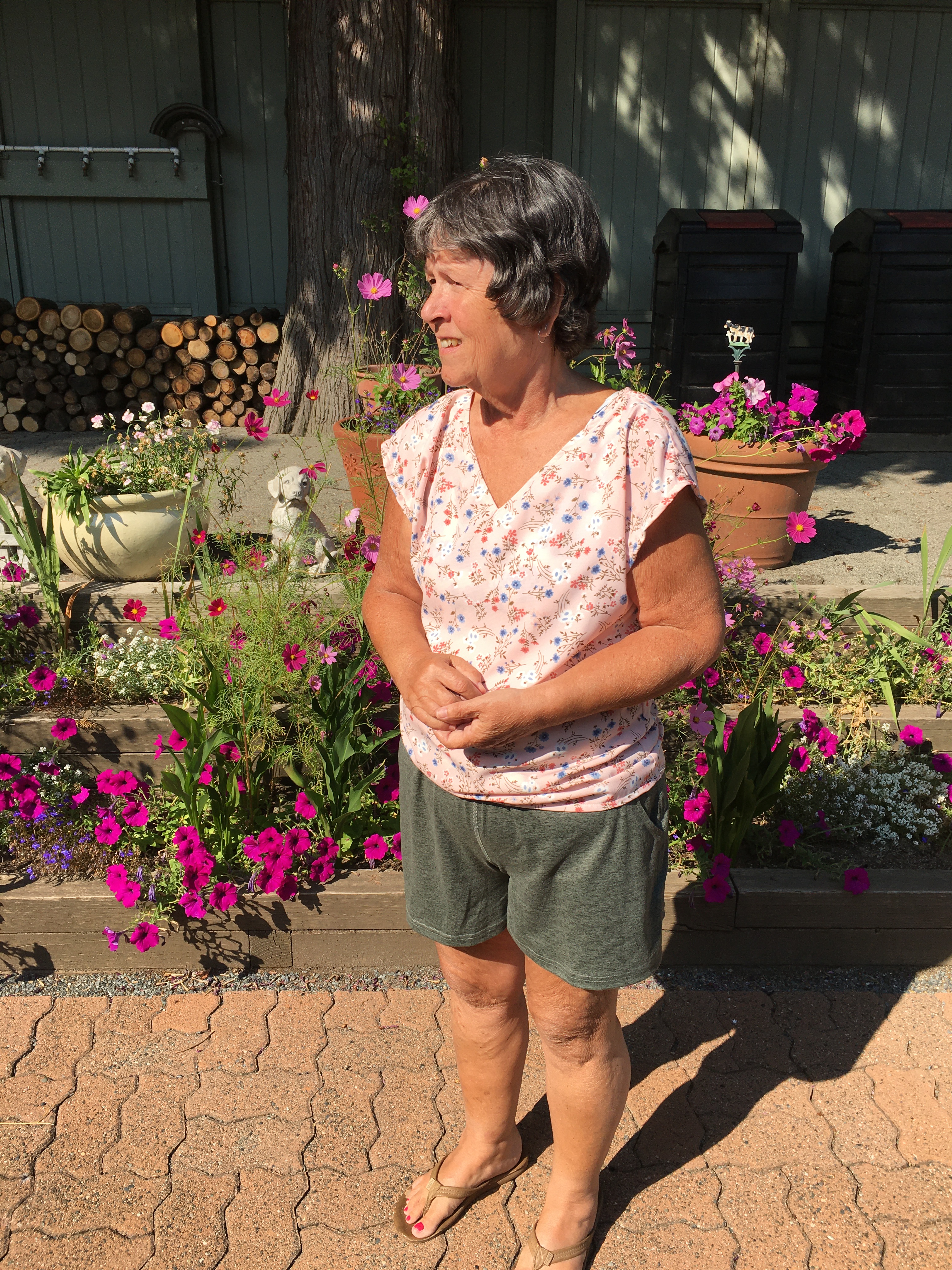 For the quilting, I did a wavy stitch with my walking foot. I used the same thread in the bobbin as in the top, that’s why you can see the quilting on the lining. The 2nd picture shows most of the quilted and cut pieces. Yes, I used a Schmetz needle! The 4th picture is close to the end … lots of clips to hold pieces in place! Unfortunately, I neglected to take other pictures as I went along.