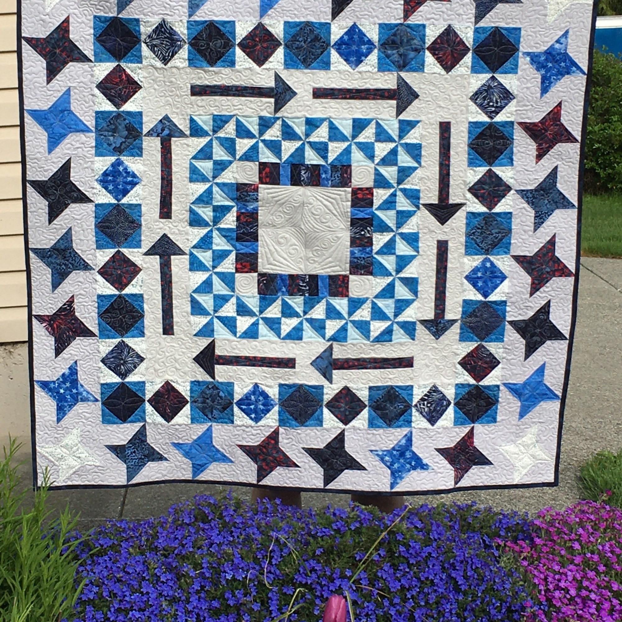 - 2 Blue Charm Star quilts – the borders are from Stash Builder rolls! No yardage cut for either of these quilts … well, except for the solid white background fabric! But, it’s all Island Batik fabric!